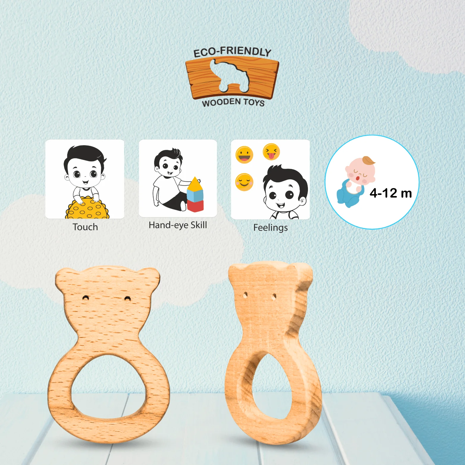 Give your baby relief and fun with the Eco-Friendly Wooden Teddy Teether