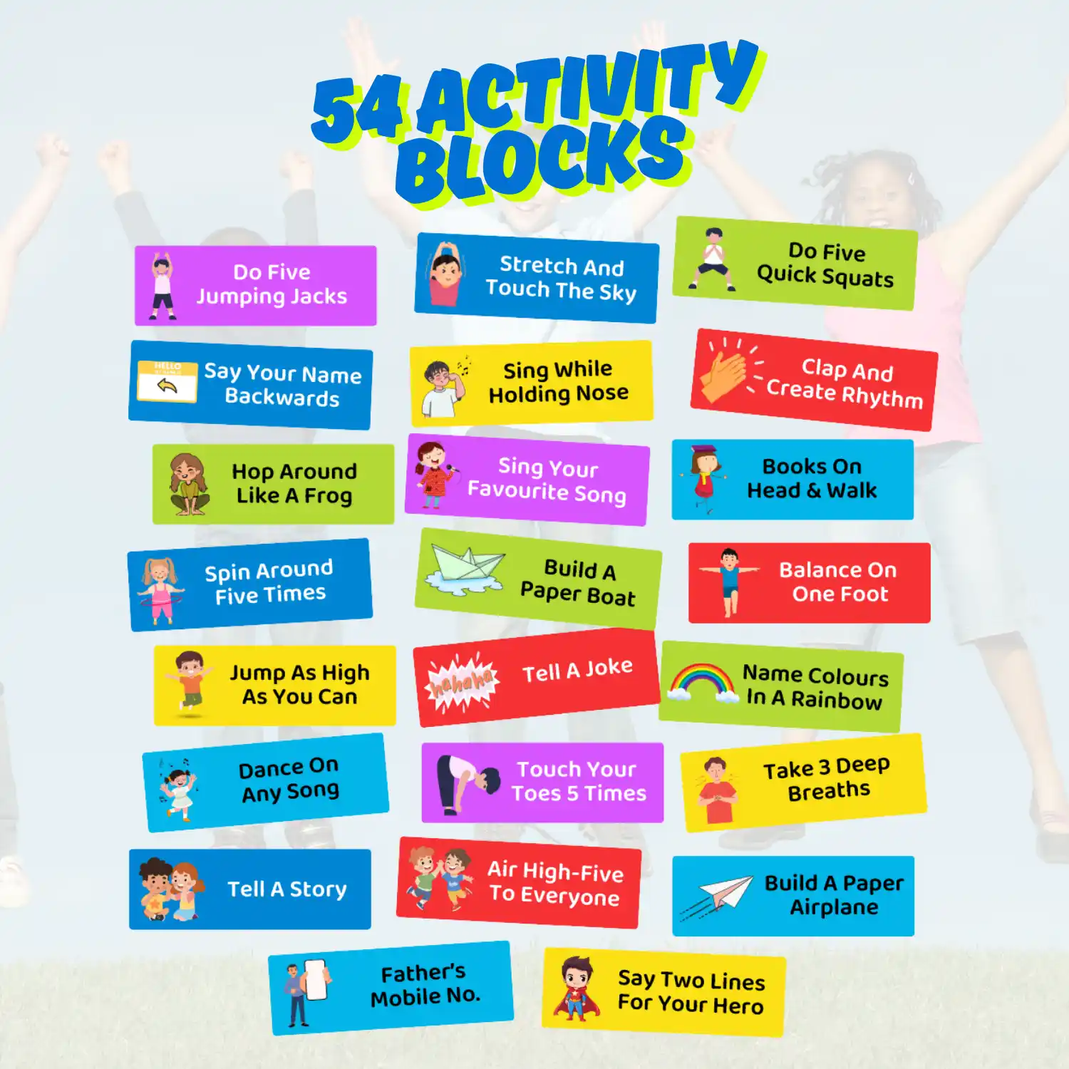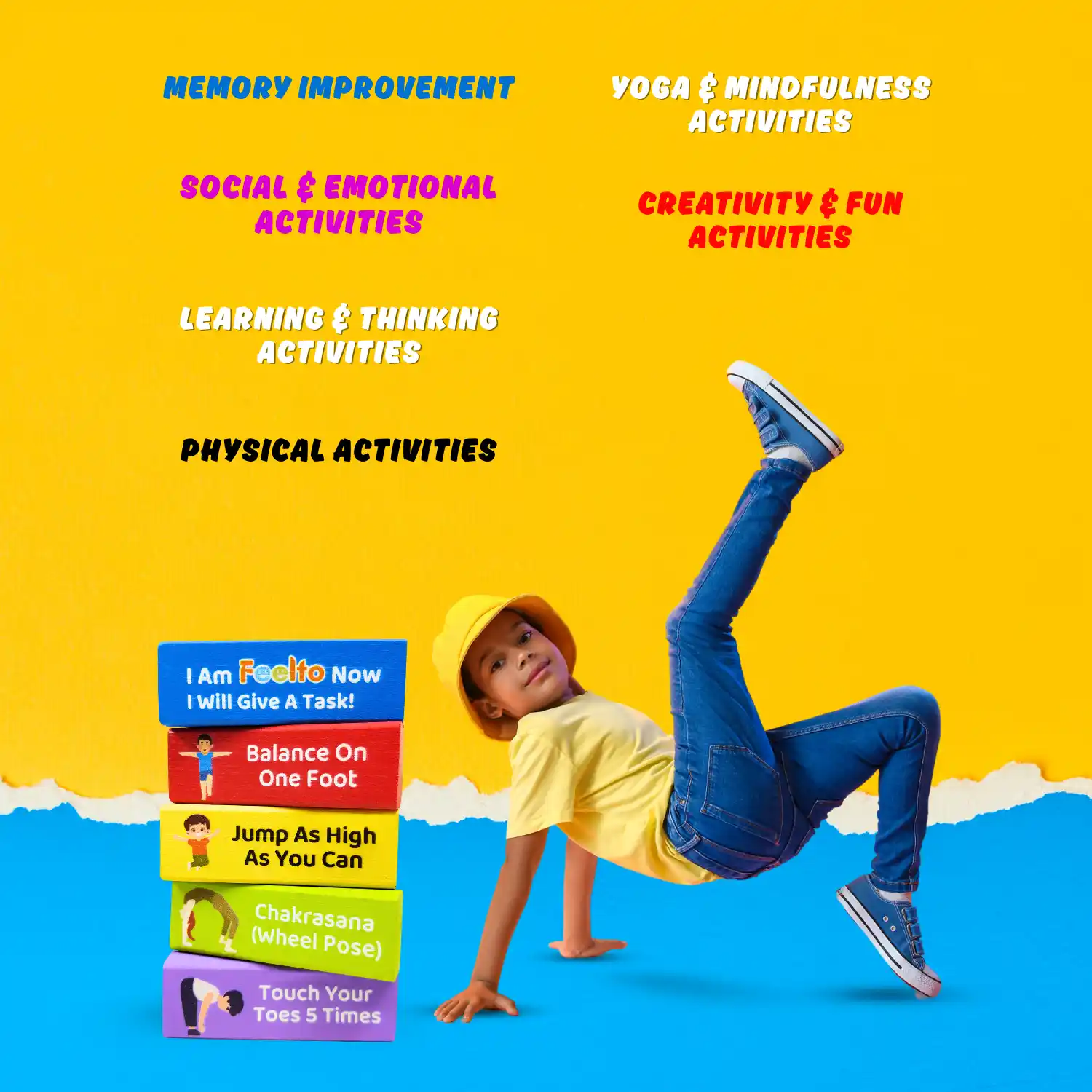 Unlock a world of excitement with our Kids Activity Tower Block! Each block comes with a unique challenge designed to boost physical activity, memory, creativity, and social skills. From fun movements to mindful yoga, laughter, and learning—every turn brings a new adventure! Let the games begin! 🎉