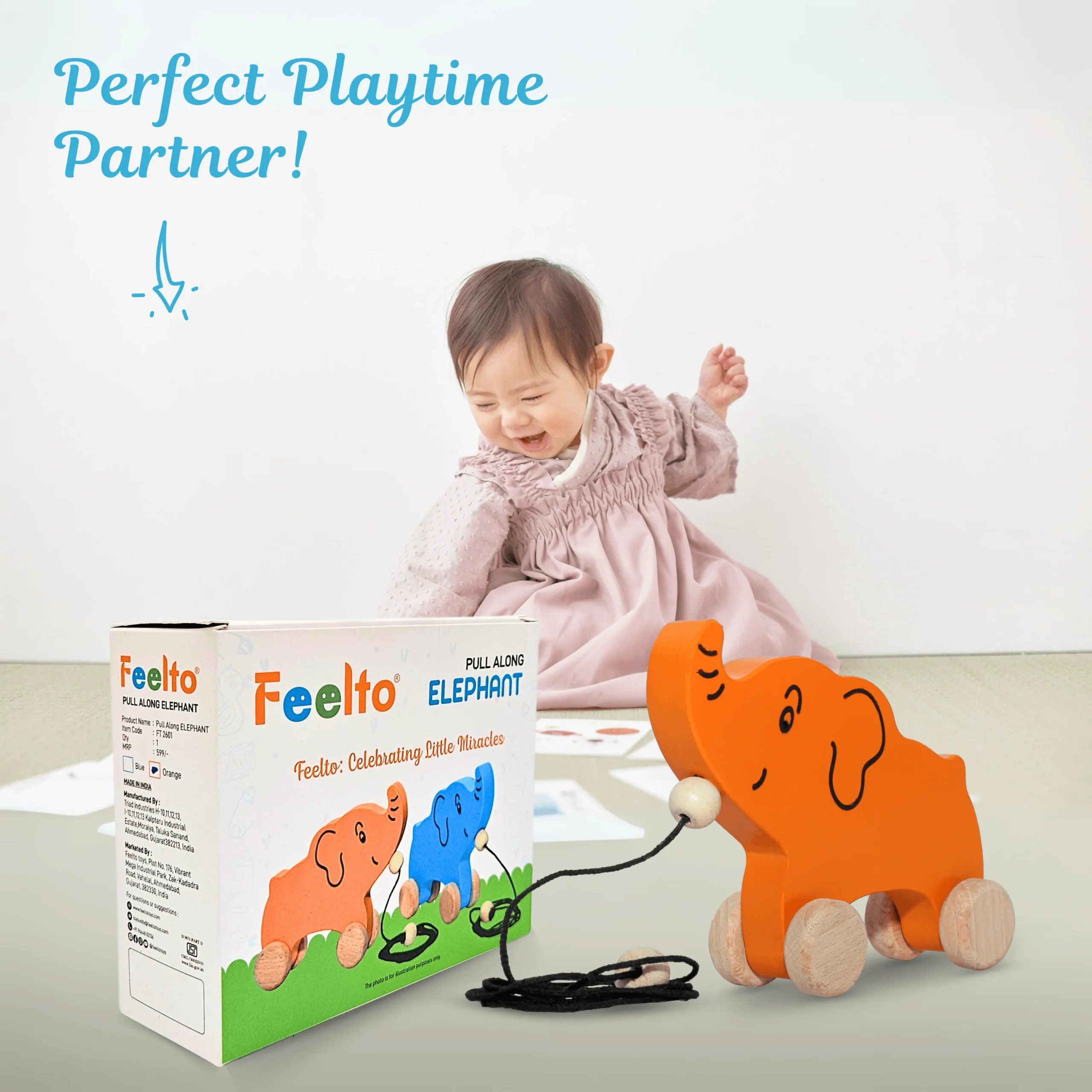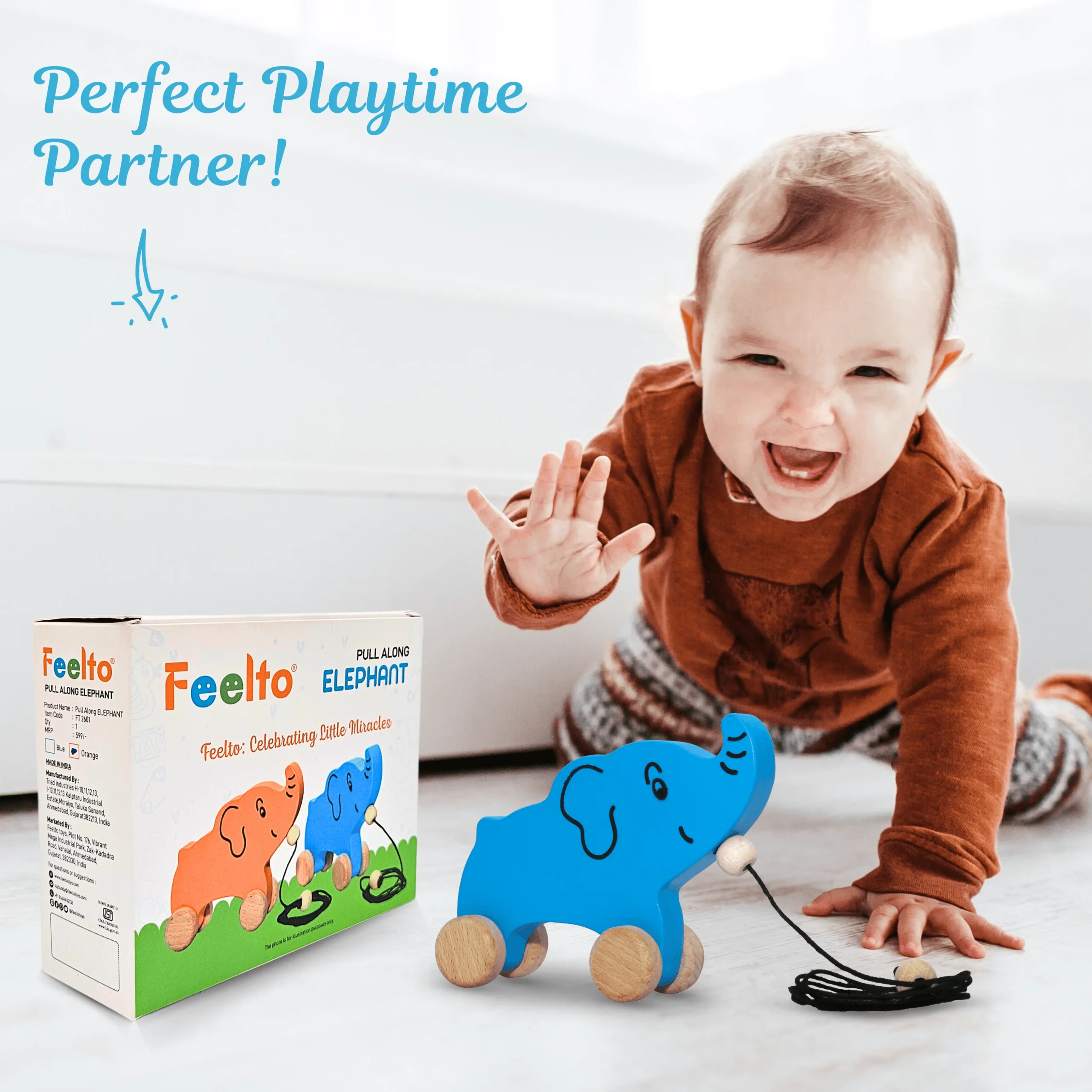 Pull Along Wooden Elephant Toy for Toddlers | Feelto Toys