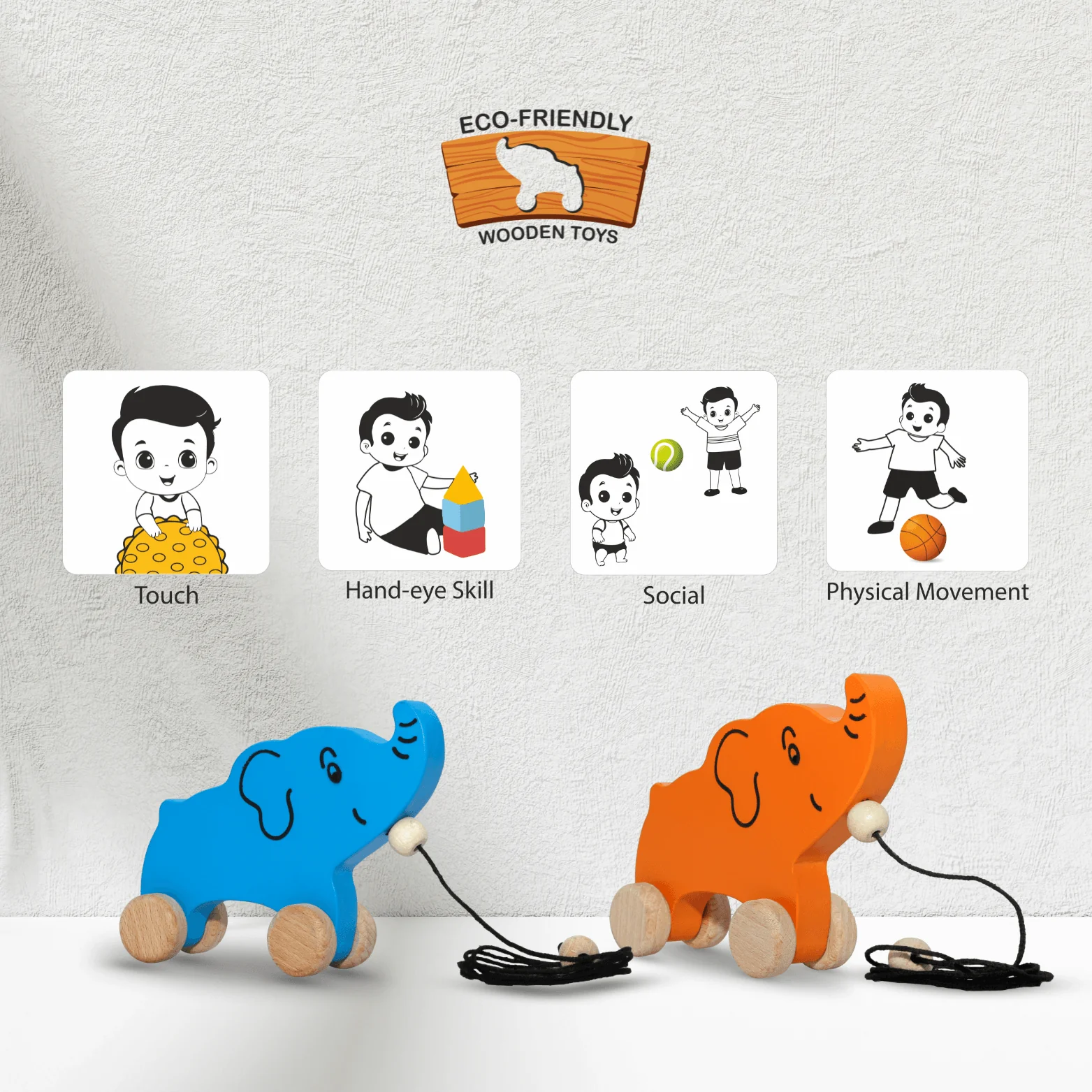 Make your toddler’s playtime magical with our Wooden Pull Along-Elephant. This charming wooden toy is designed for endless fun and learning.