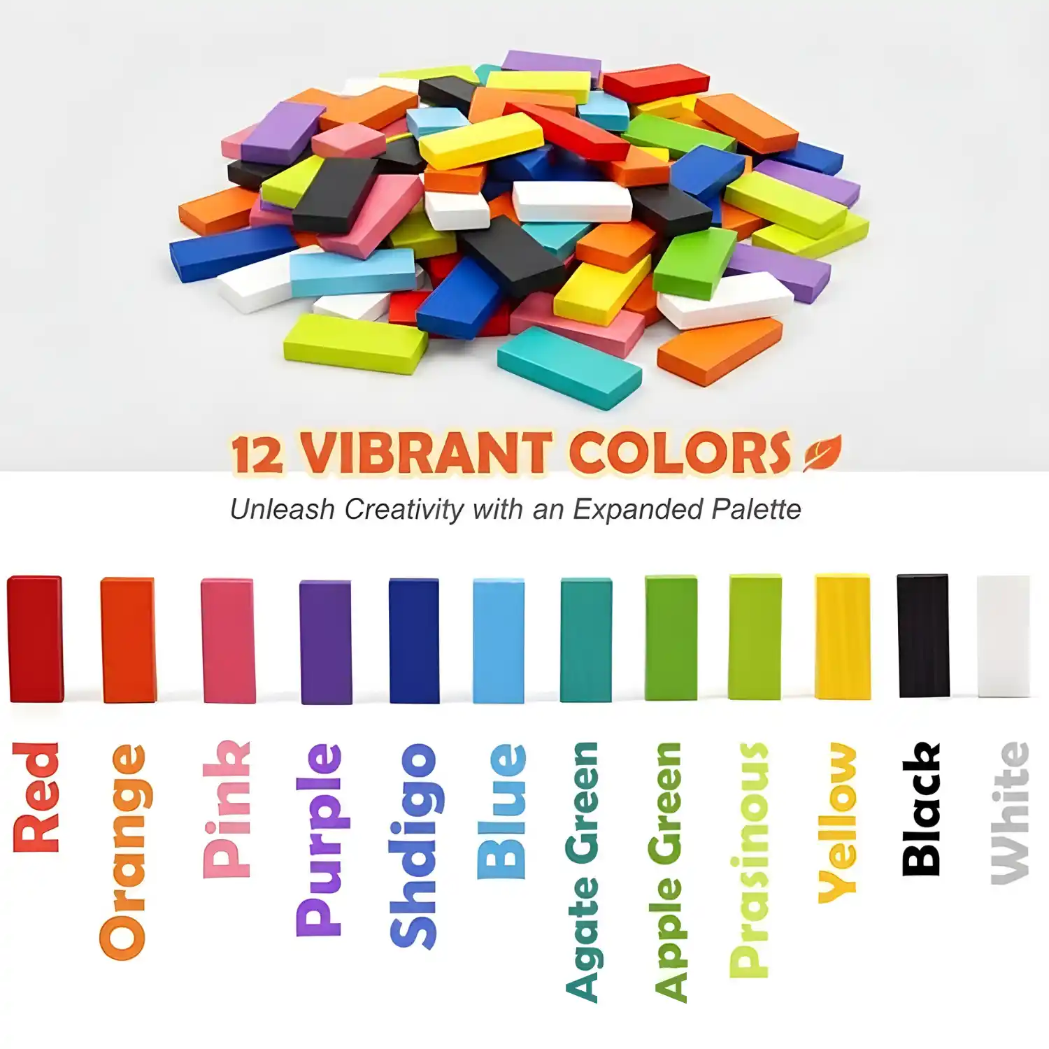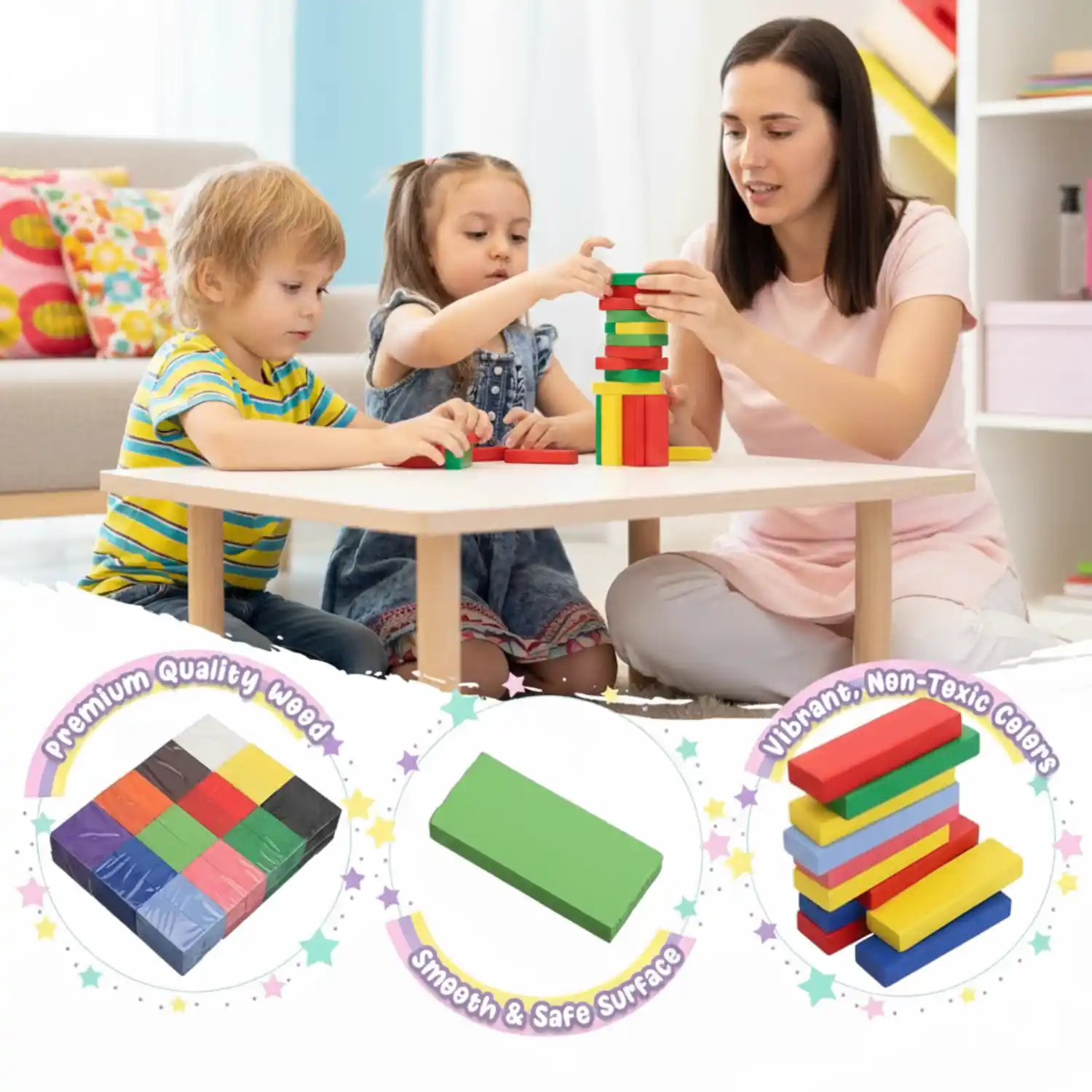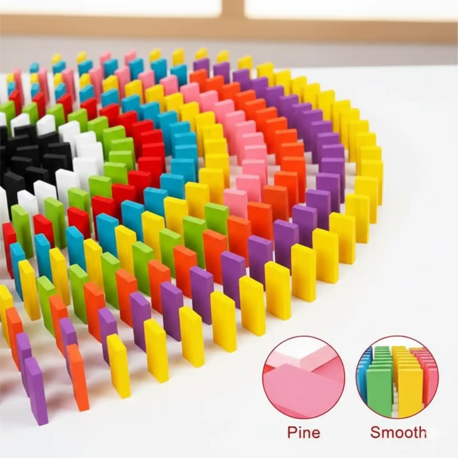 This wooden domino set invites kids into a world of design and satisfying movement. They build lines, curves and spirals then