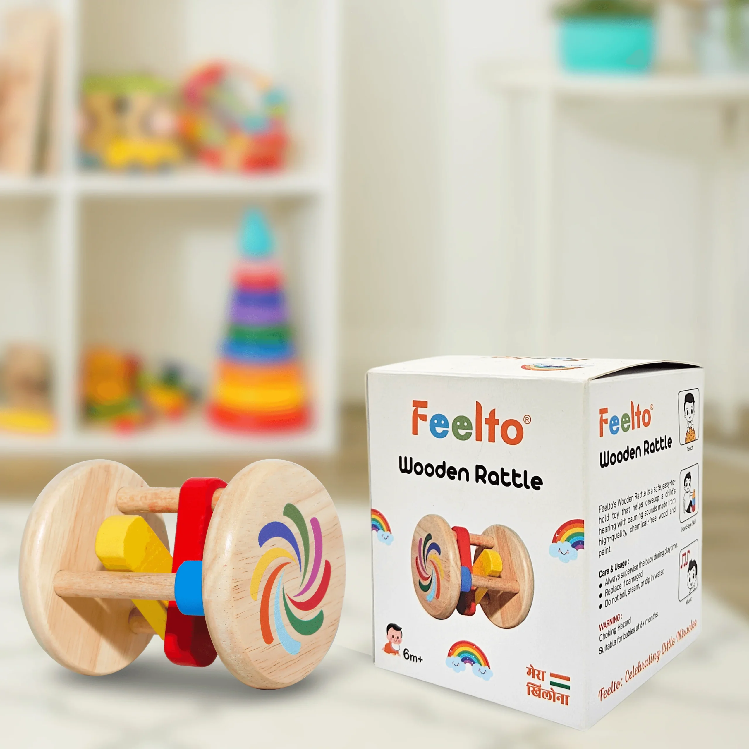 Introduce your baby to playtime with our Stick Rattle. Crafted from eco-friendly, high-quality wood, this rattle is safe, durable, and perfect for little hands to grasp. The smooth, natural finish and gentle curves encourage fine motor skill development. As your baby shakes it, the rattle produces a soft, soothing sound, ideal for sensory exploration. Free from harmful chemicals and artificial dyes, it’s a safe and responsible choice for your baby’s first toy. Cherish the joy it brings as it becomes a beloved keepsake for years.